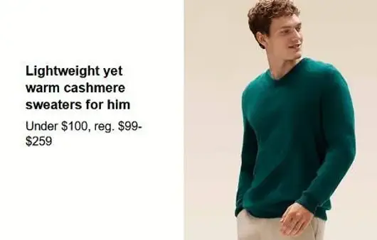 Get it now! Shop in store and get men's cashmere sweaters under $100.